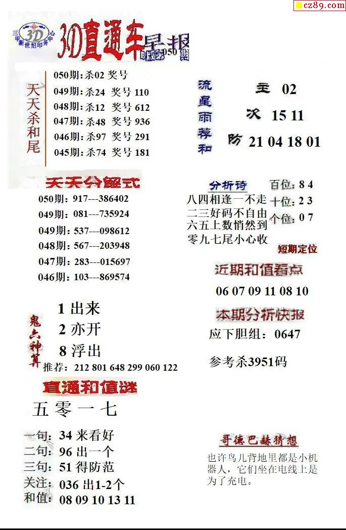 福彩3D2026050期直通车早报ABCD版