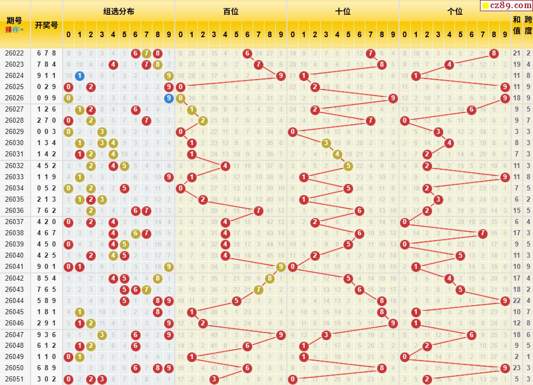 走 势:开奖号走势跨度走势和值走势