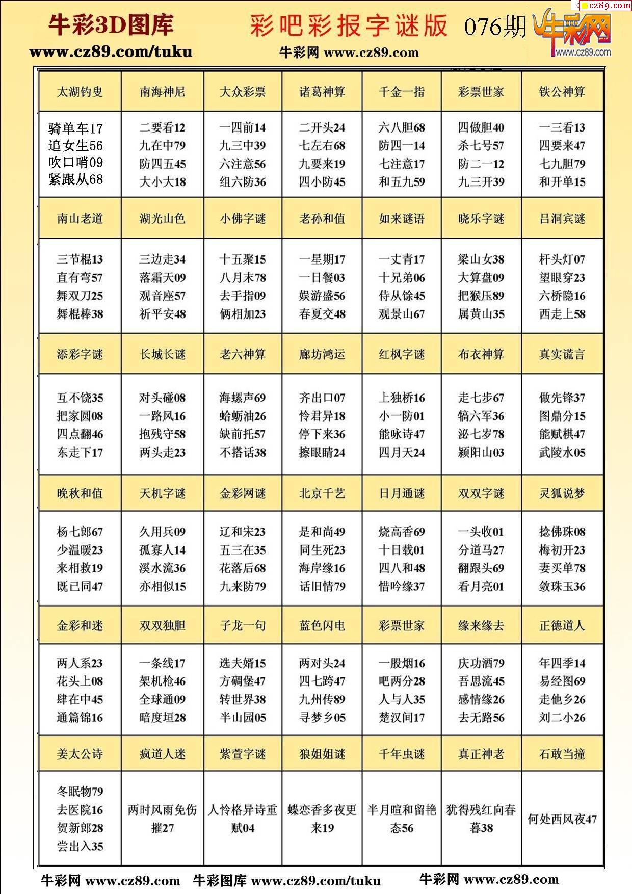 牛彩版3D字谜彩报图26年076期打印版