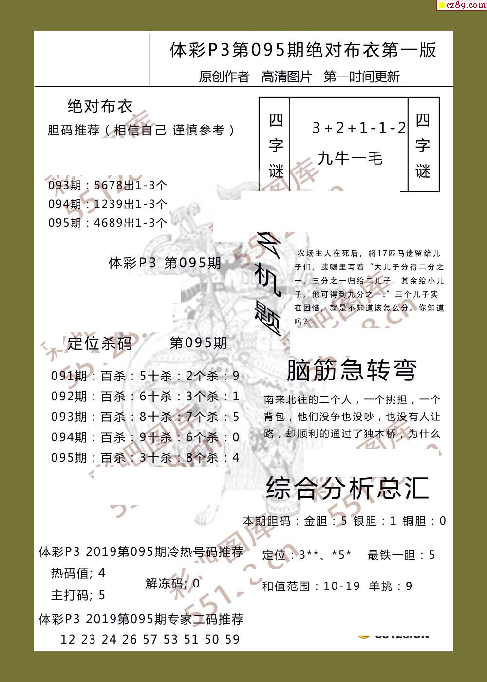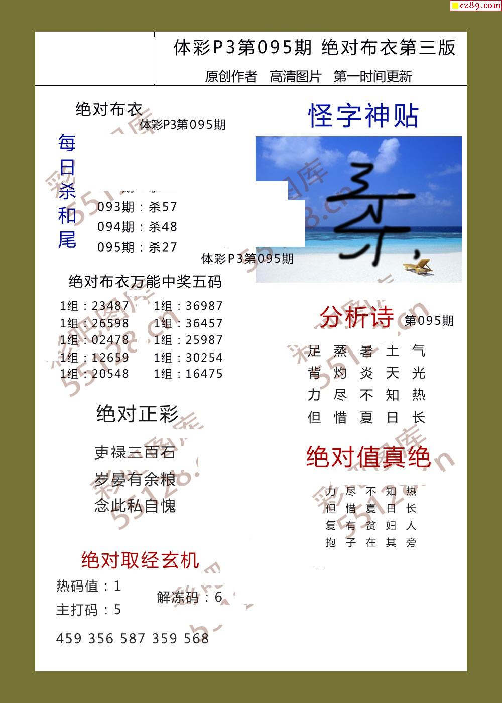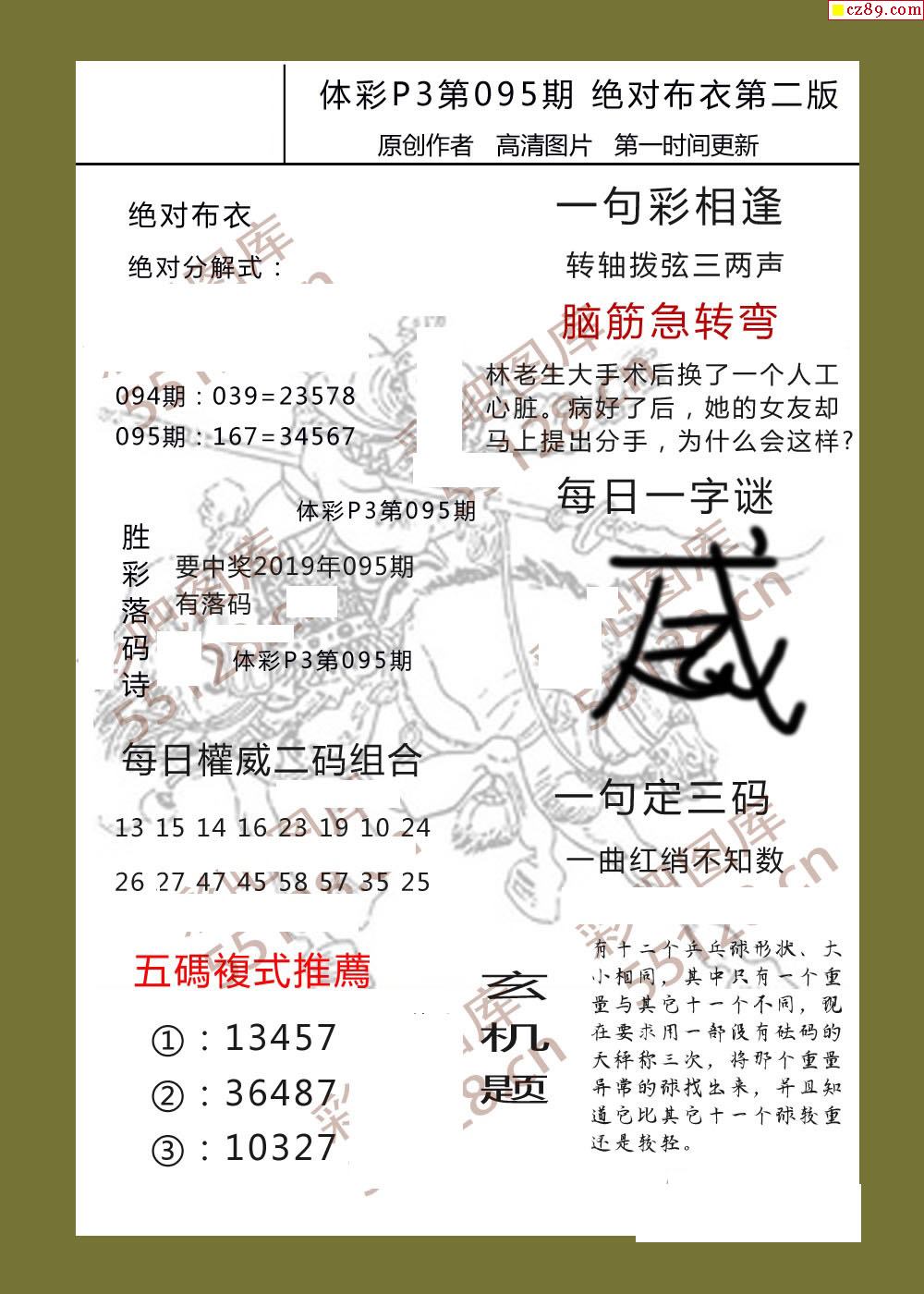 绝对布衣095期体彩p3图谜