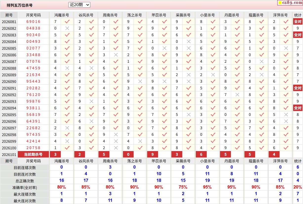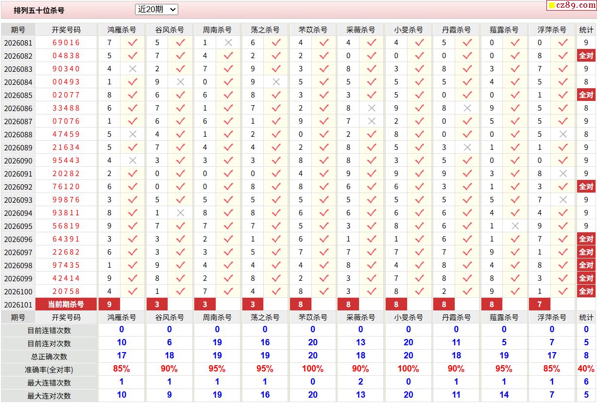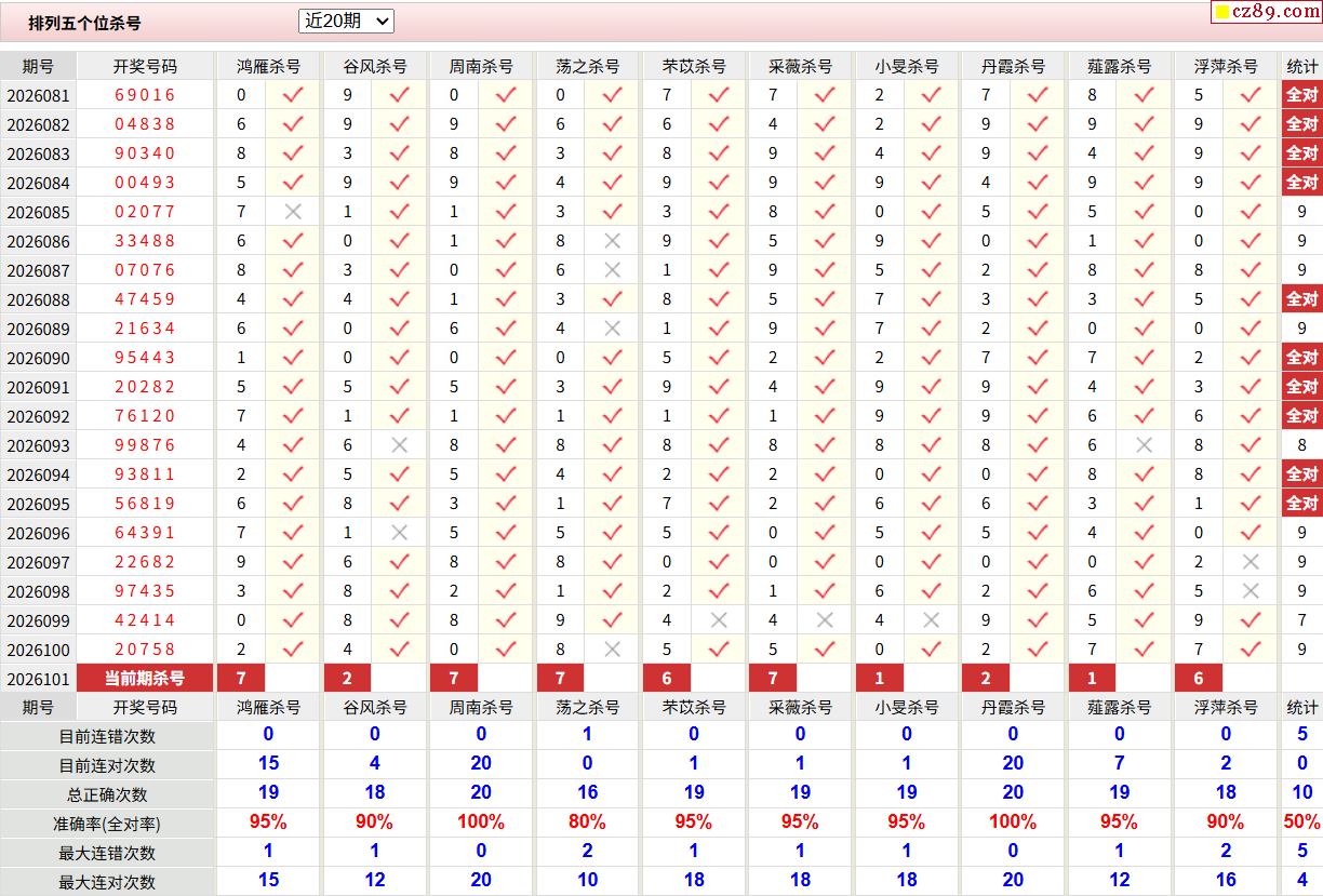 26年101期彩宝贝专家体彩P3杀号定码图表