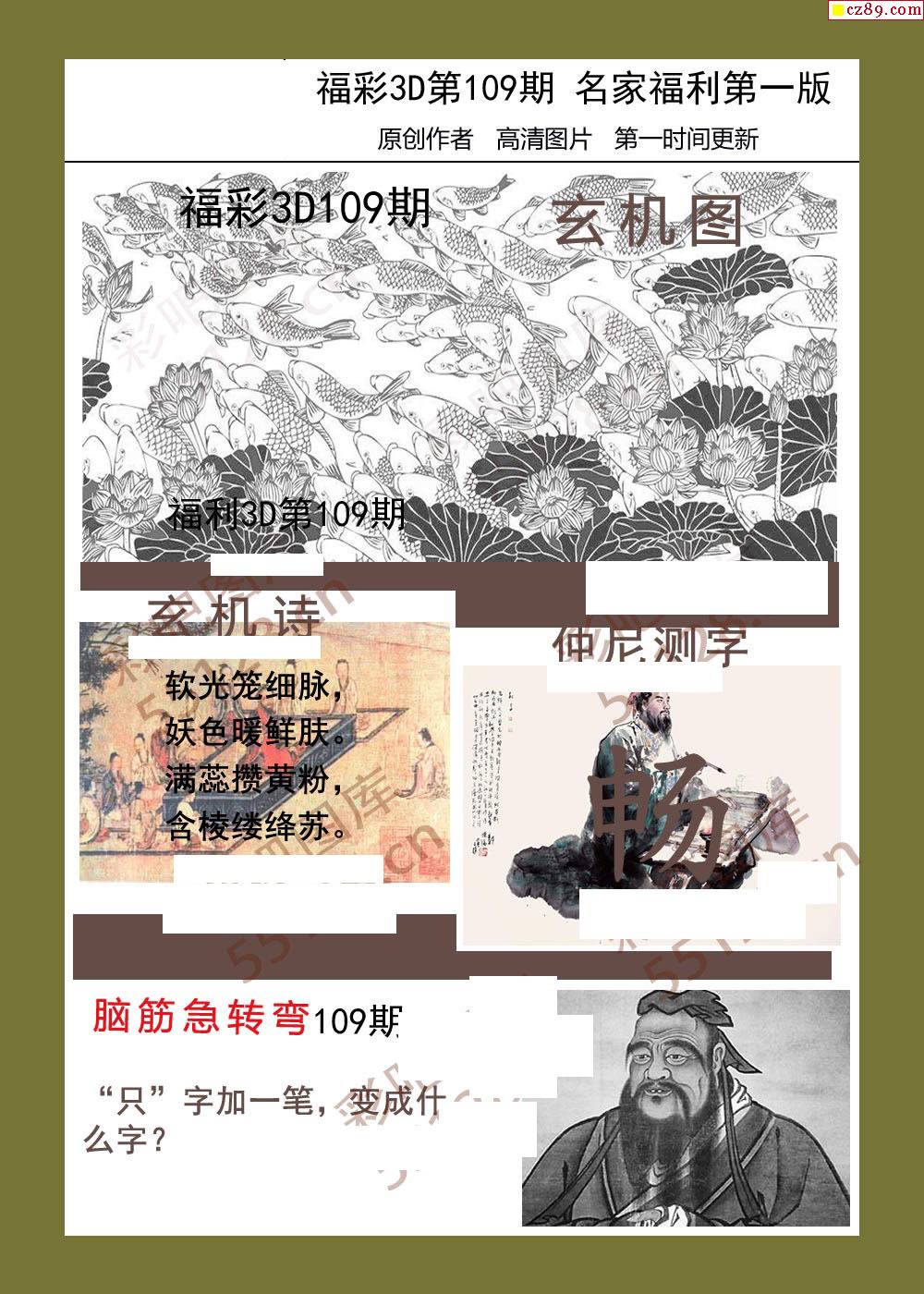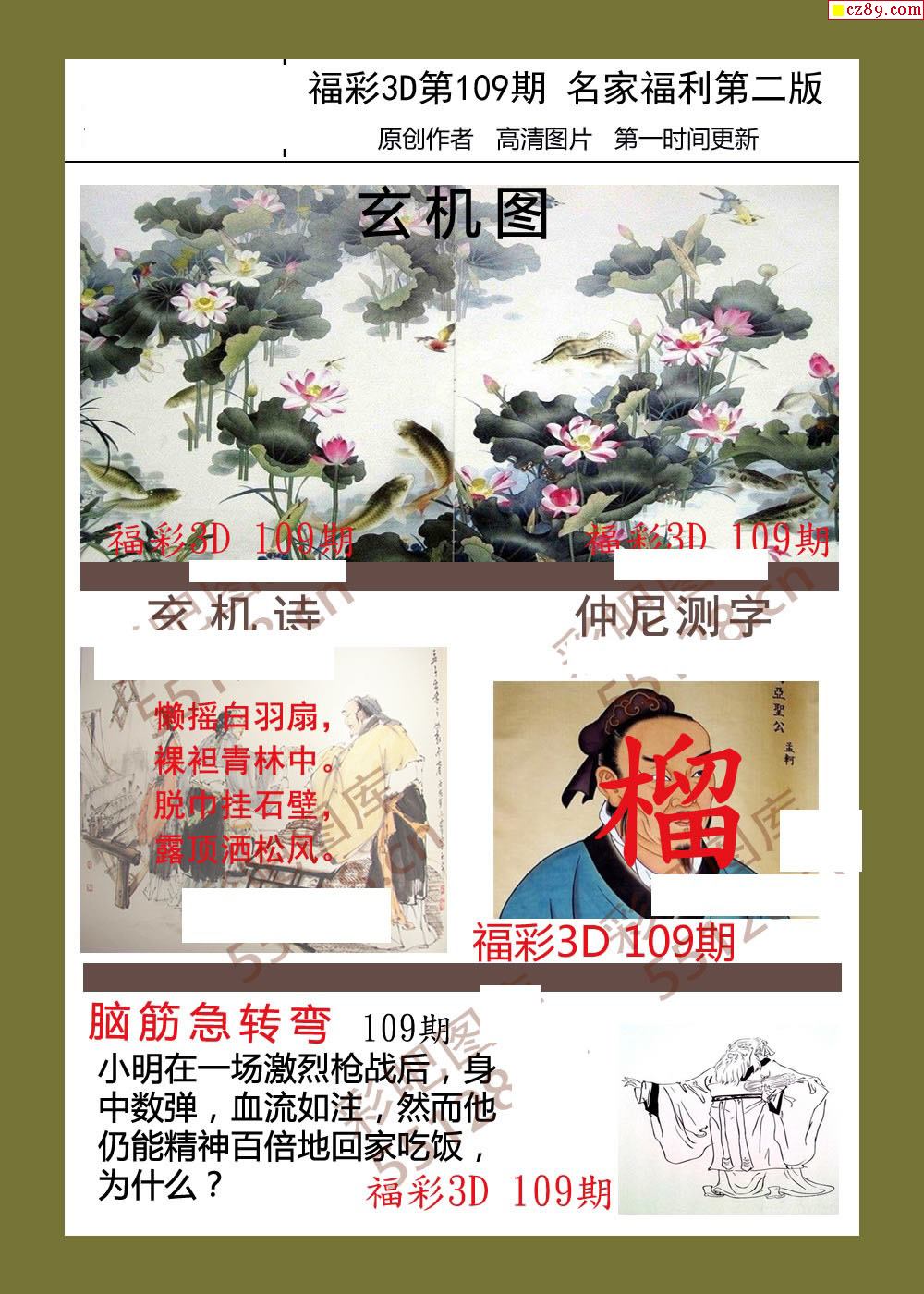 福彩名家福利彩票3d26年109期图谜