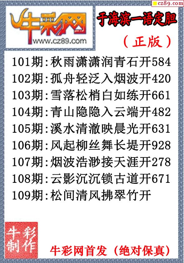 2026年109期七绝圣手3d和尾字谜【牛彩网特邀专家】