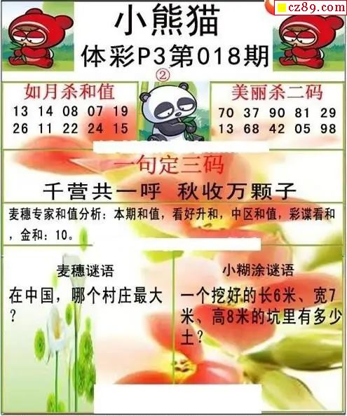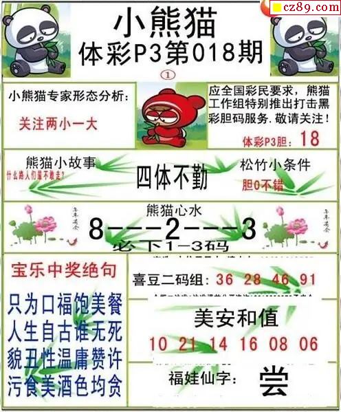 小熊猫2026018期体彩P3图谜