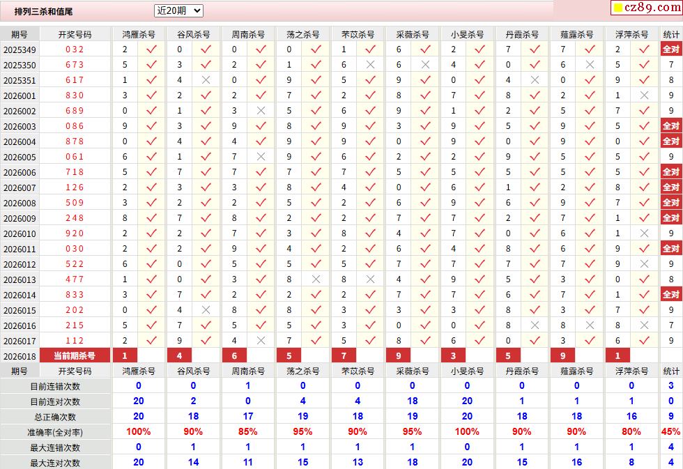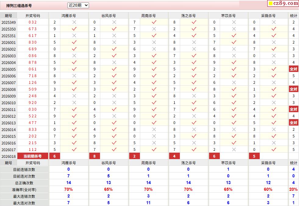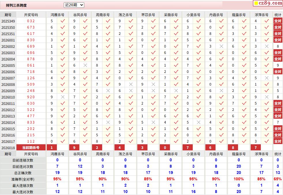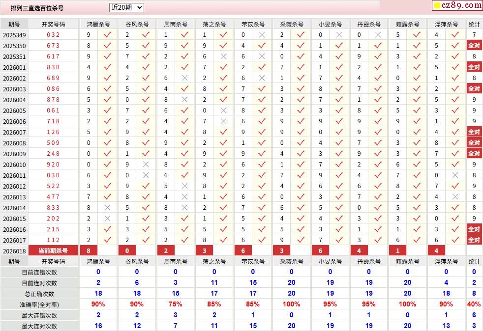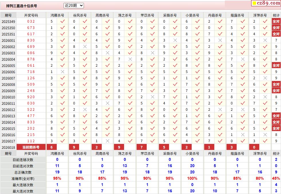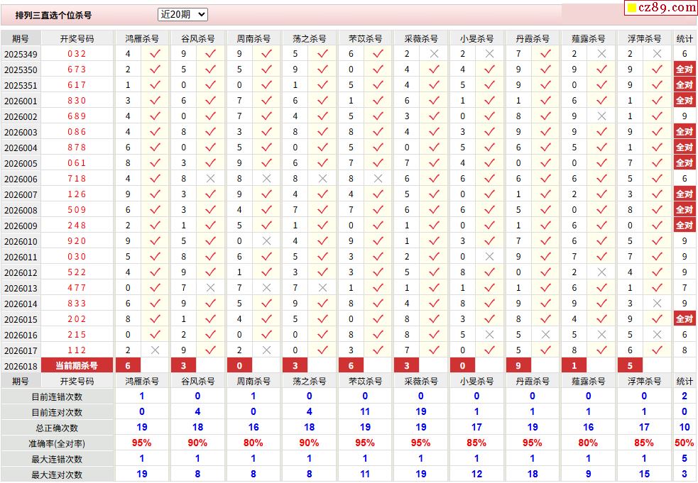 26年018期彩宝贝专家体彩P3杀号定码图表