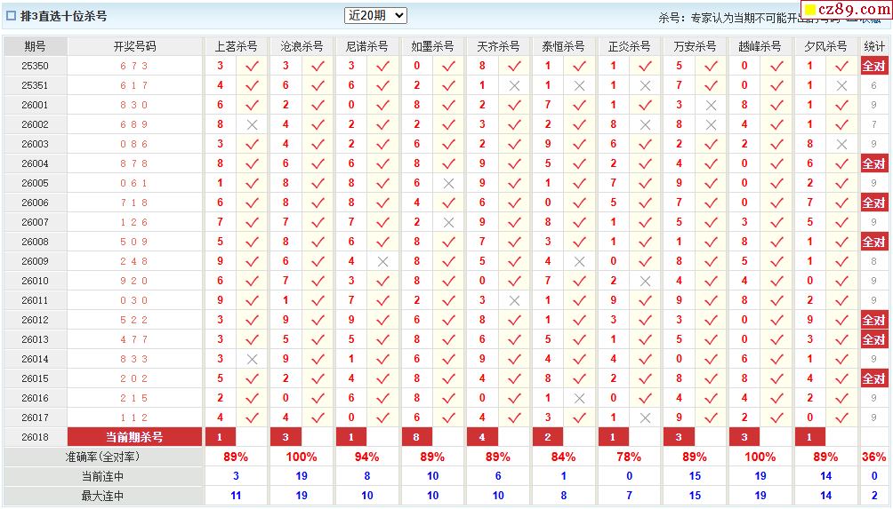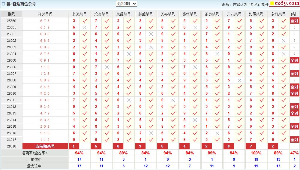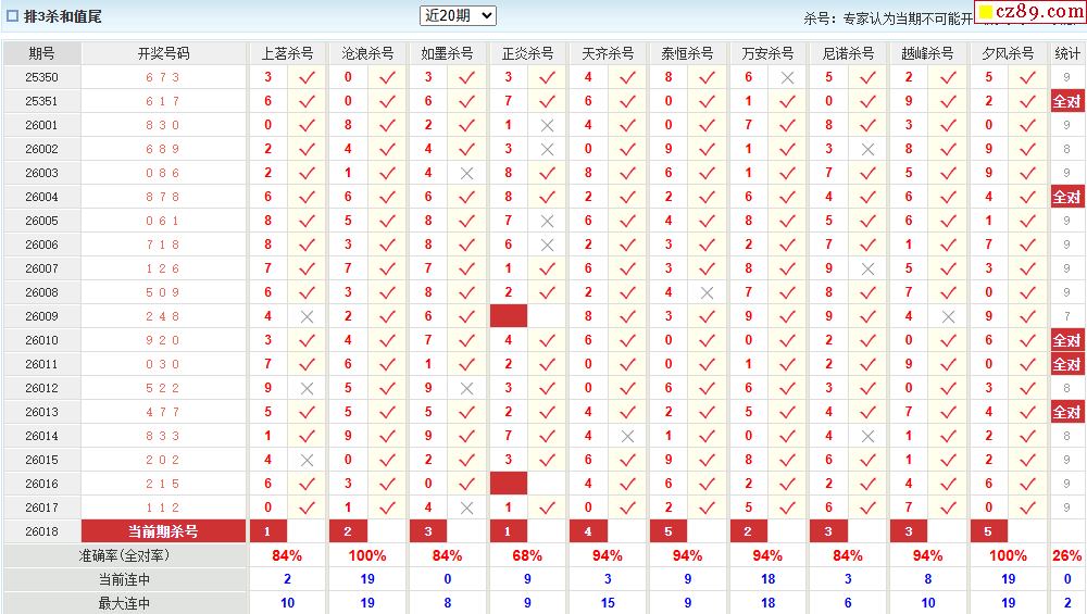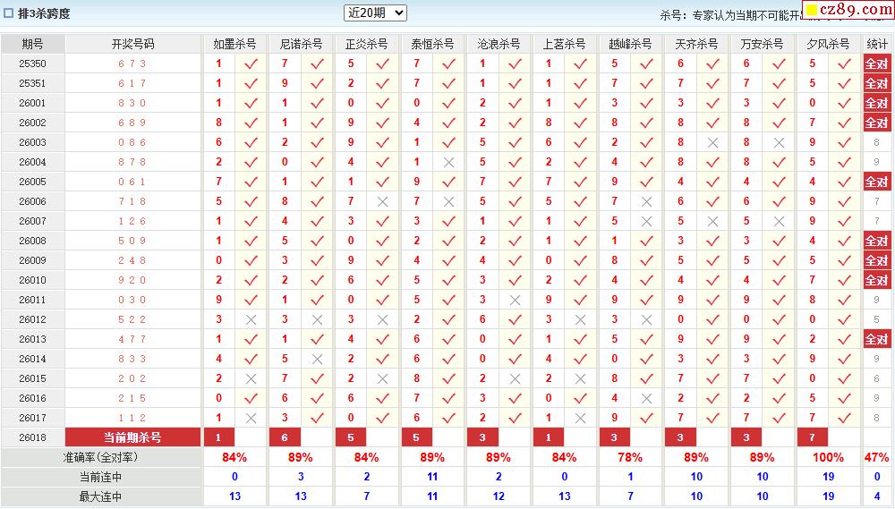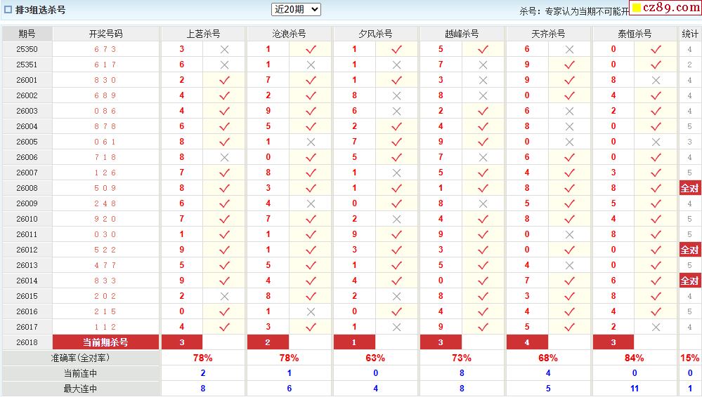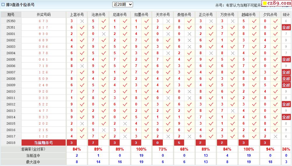 26年018期彩宝贝专家体彩P3杀号定码图表