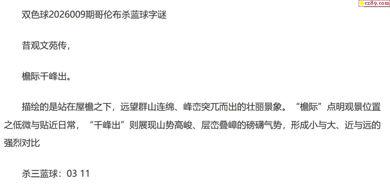 26年福彩双色球009期 哥伦布一句杀蓝球字谜