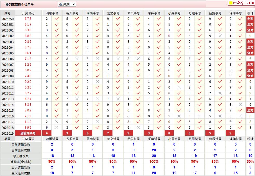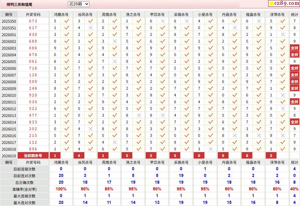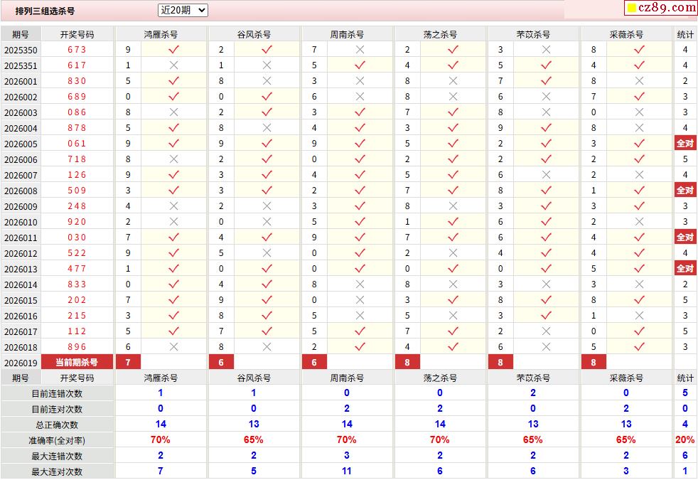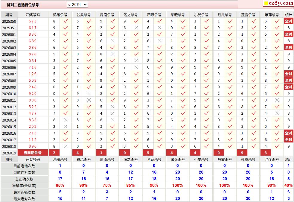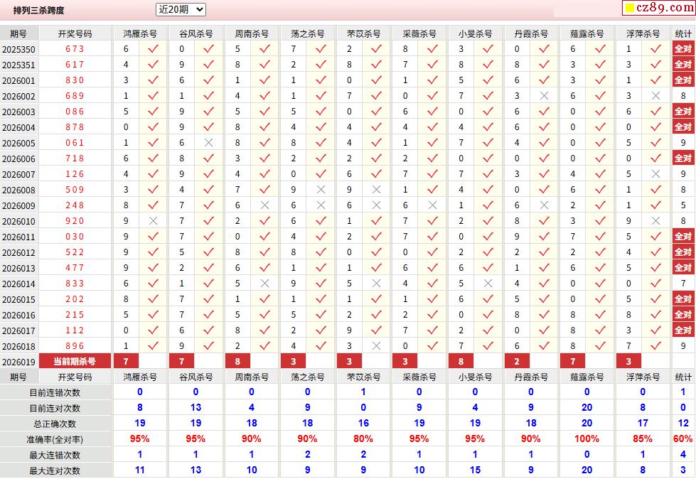 26年019期彩宝贝专家体彩P3杀号定码图表