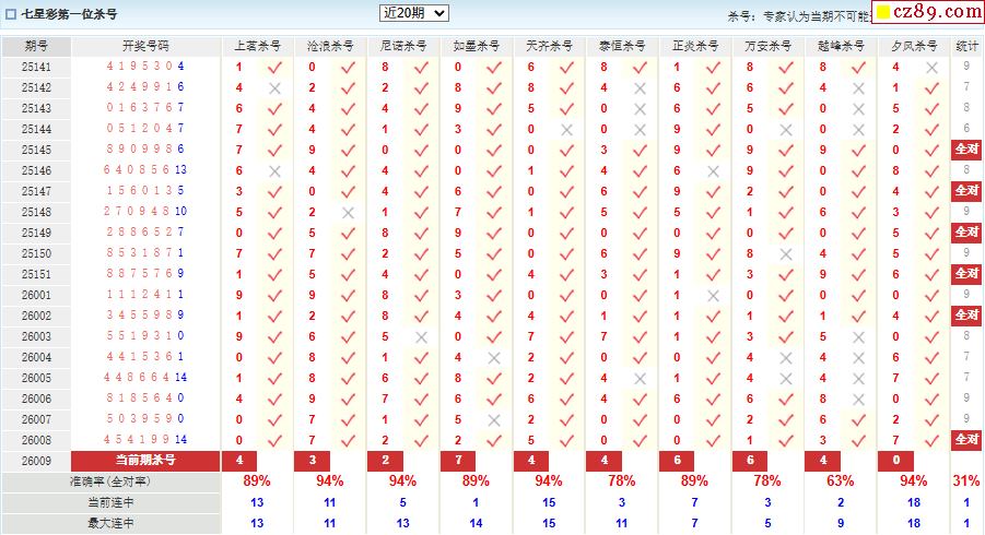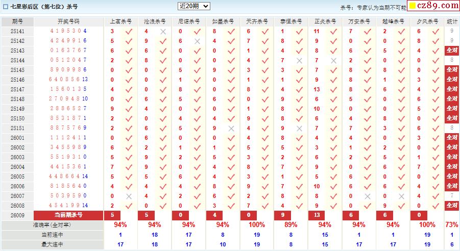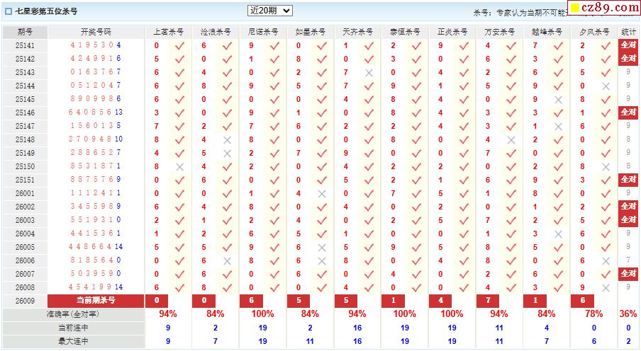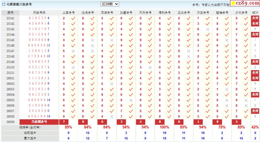 009期彩票专家体彩七星彩定位杀号图表