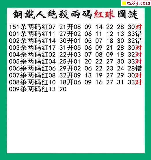 钢铁人杀两码红球009期双色球图谜