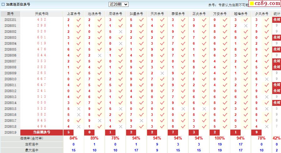 26年019期彩宝贝专家福彩3D杀号定码图表