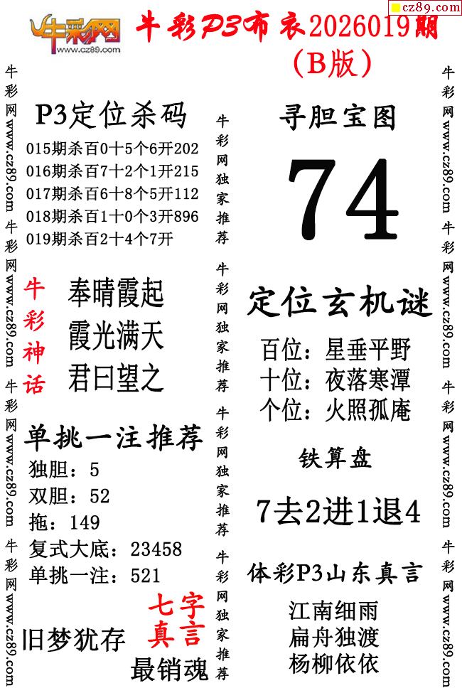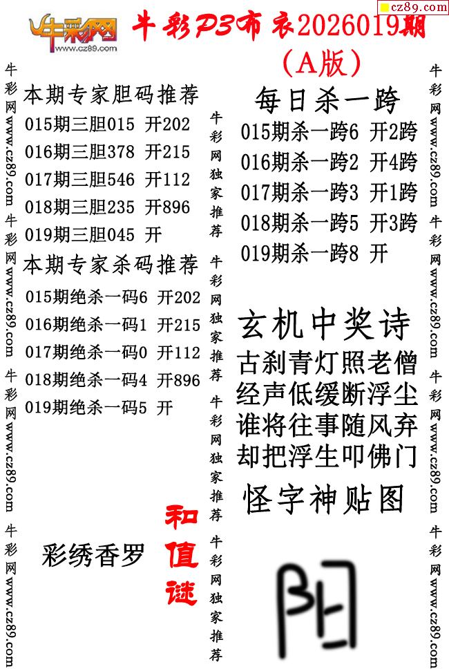 牛彩P3布衣26年019期AB版图谜(精华版)