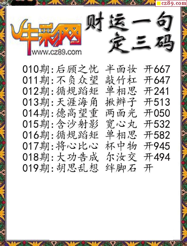 牛彩版3D字谜彩报图26年019期打印版