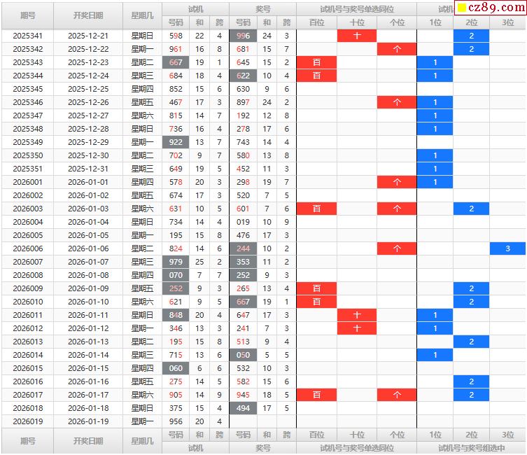 26年019期福彩3D试机号走势图表分析