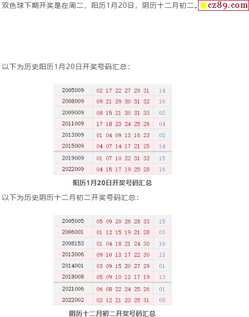 历史上的今天双色球1月20日开奖号码汇总