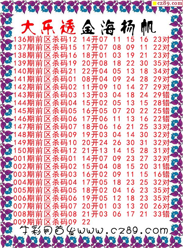 大乐透009期牛彩特邀专家前区后区杀号定胆图表