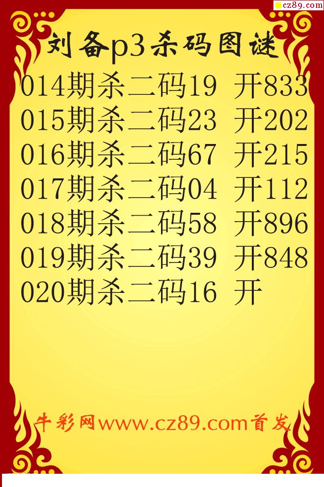 刘备杀码26020期p3原创图谜