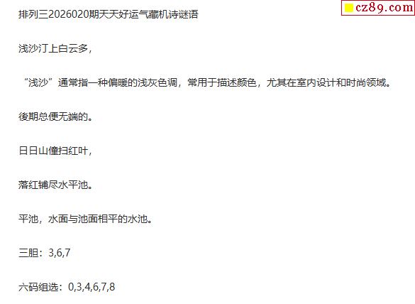 体彩P3字谜汇总2026年020期超级马克p3今日字迷总汇