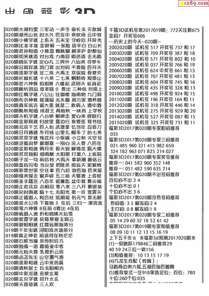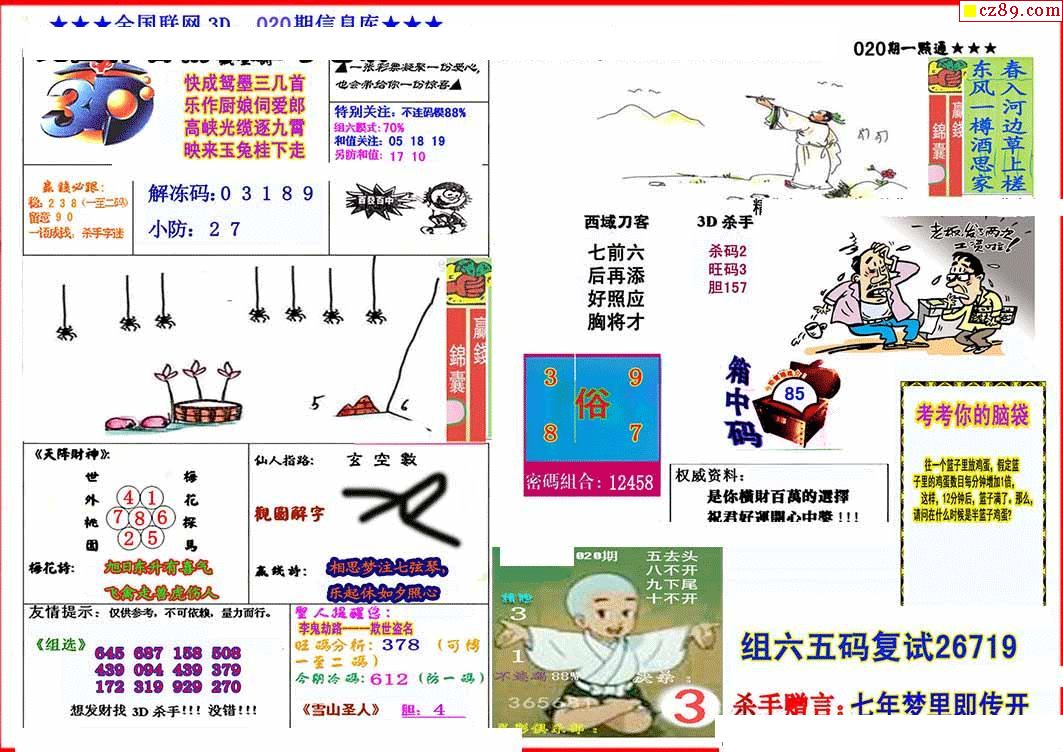 杀手+鑫马快报+字迷汇总26年020期3d图谜