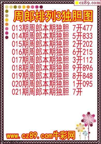 26年021期周郎排列3独胆图
