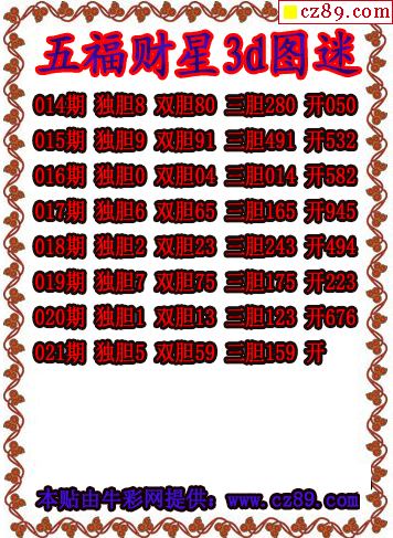 2026021期3d图谜汇总(五)