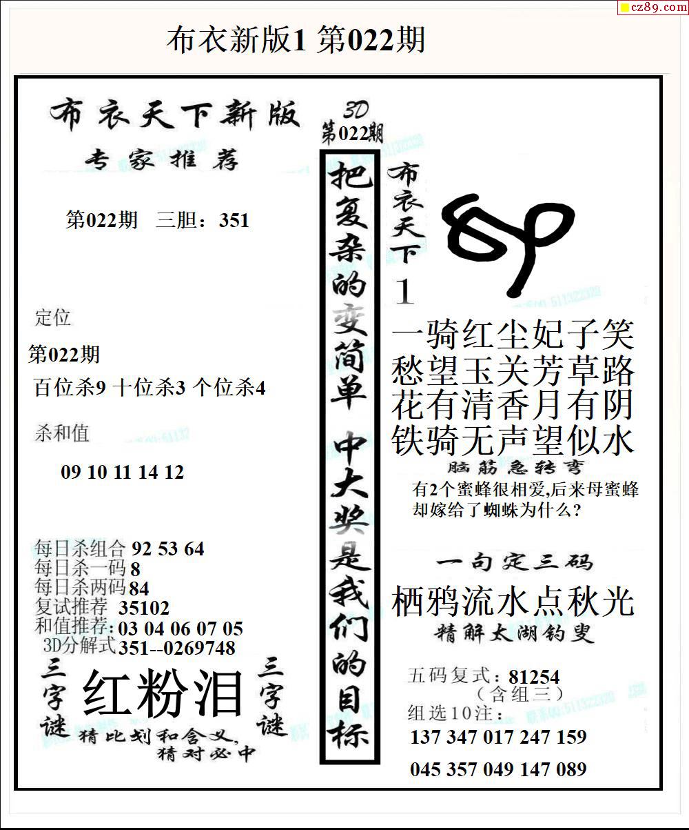 牛彩版3D字谜彩报图26年022期打印版