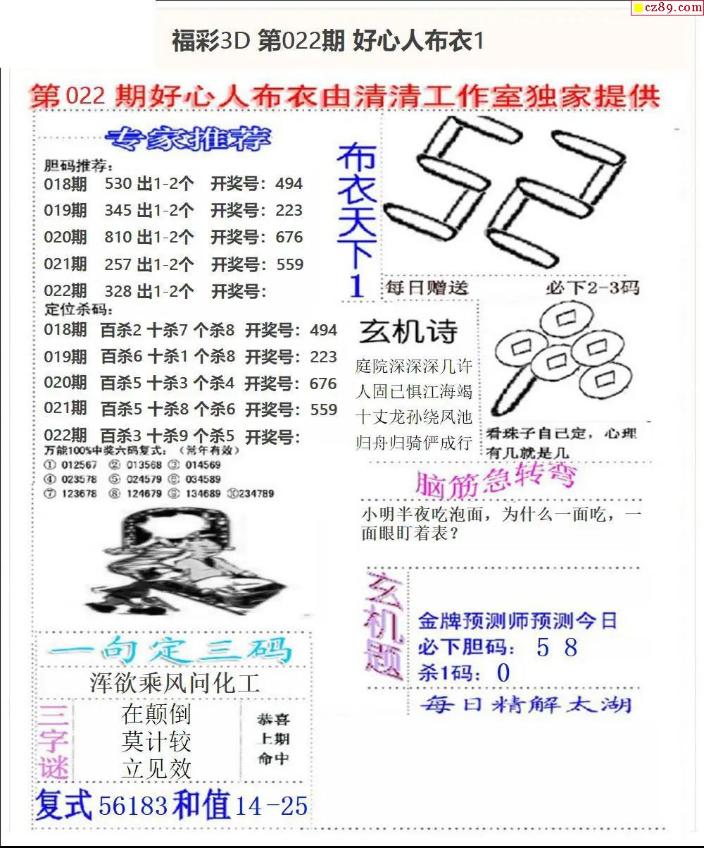 2026022期解太湖3d字图迷汇总报