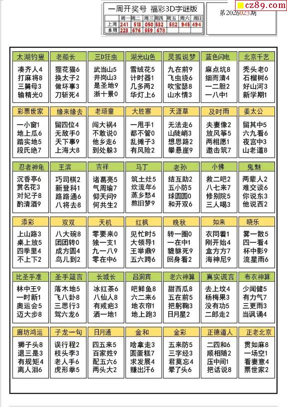 福彩3D2026023期图谜汇总