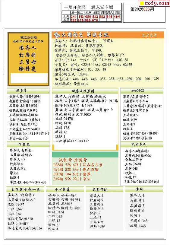 2026023期解太湖3d字图迷汇总报