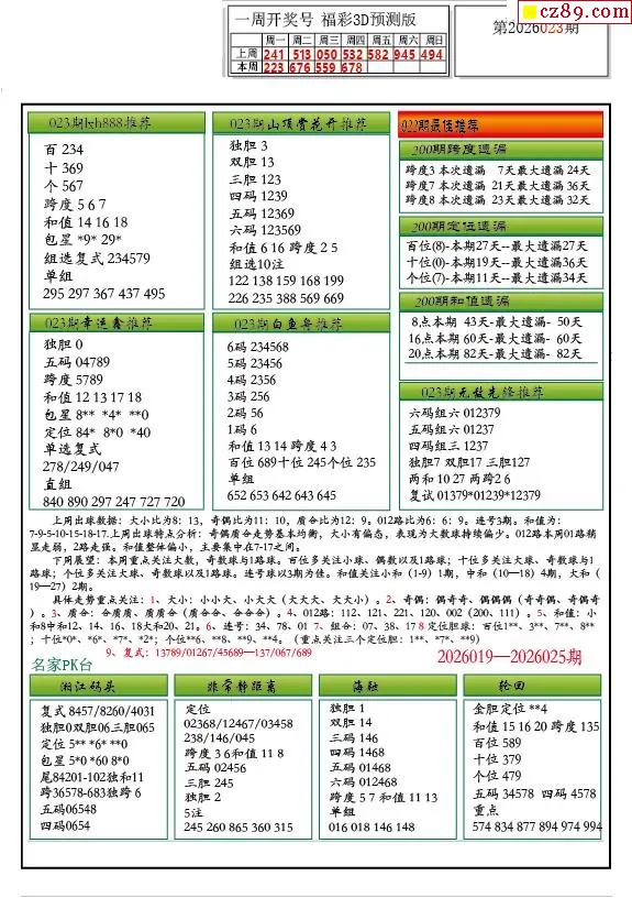 牛彩版3D预测彩报图26年023期打印版