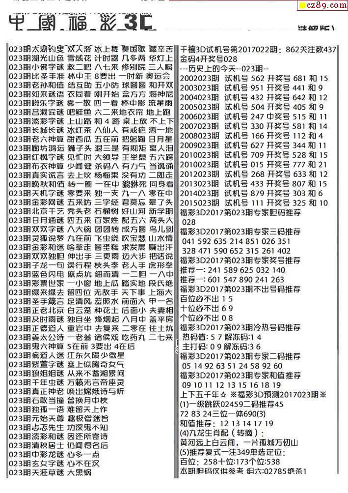 杀手+鑫马快报+字迷汇总26年023期3d图谜