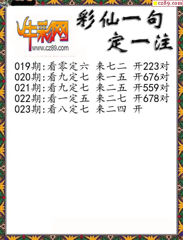 牛彩版3D字谜彩报图26年023期打印版