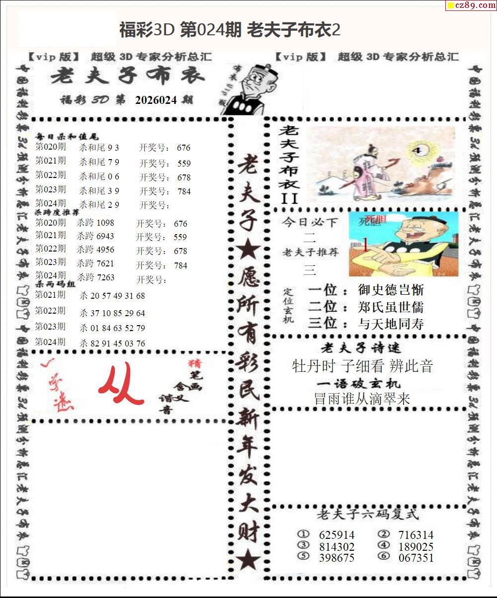老子杀号2026024期今日3d图谜