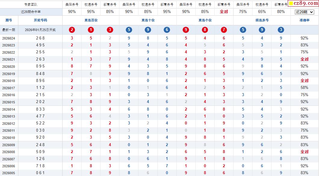 26年025期彩宝贝专家体彩P3杀号定码图表