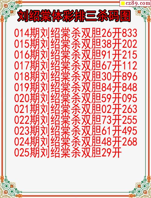 26年025期刘绍棠体彩排三杀码图