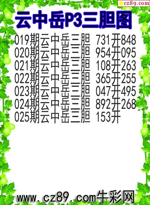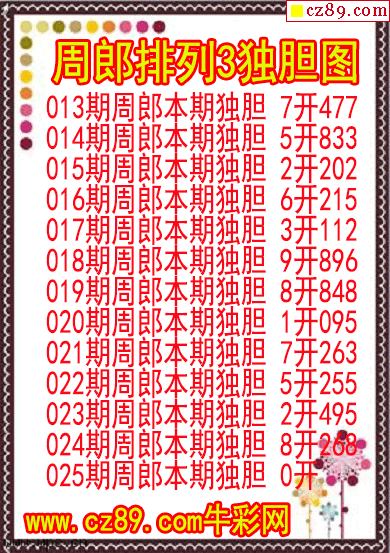 2026年025期牛彩网体彩P3画迷图谜汇总分享