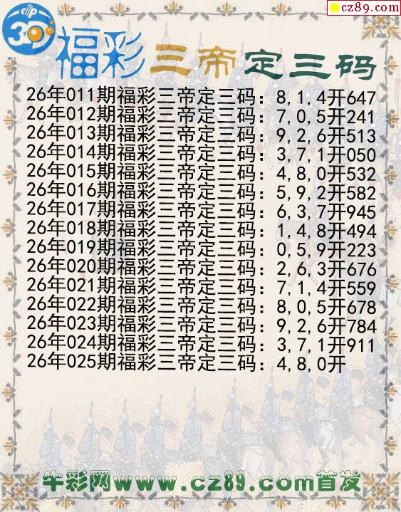 福彩三帝定三码025期3d图谜