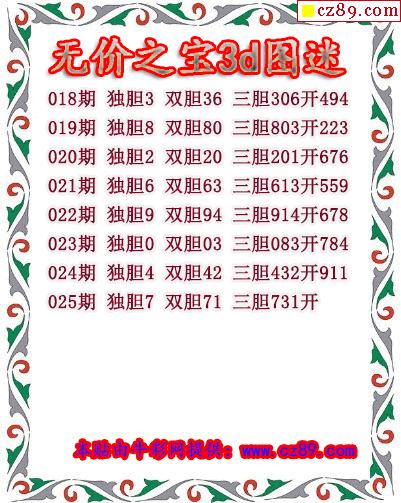 天下奖王2026025期3d图谜