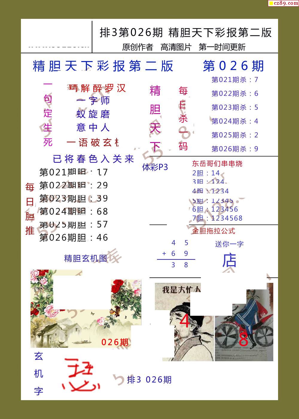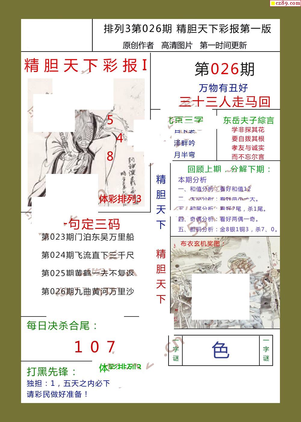 精胆天下彩报026期体彩p3图谜