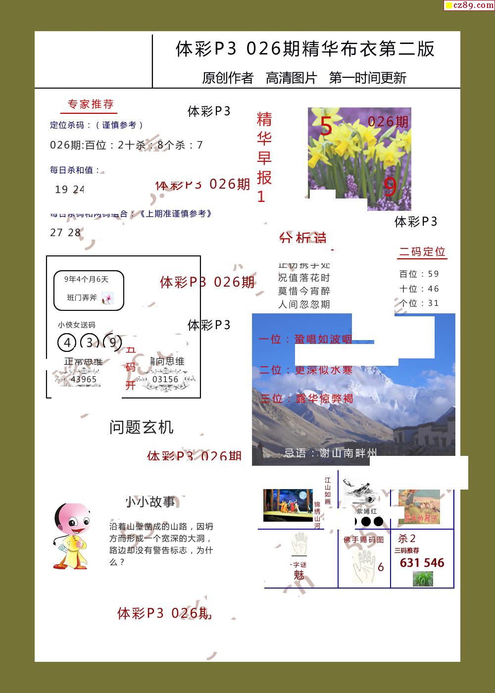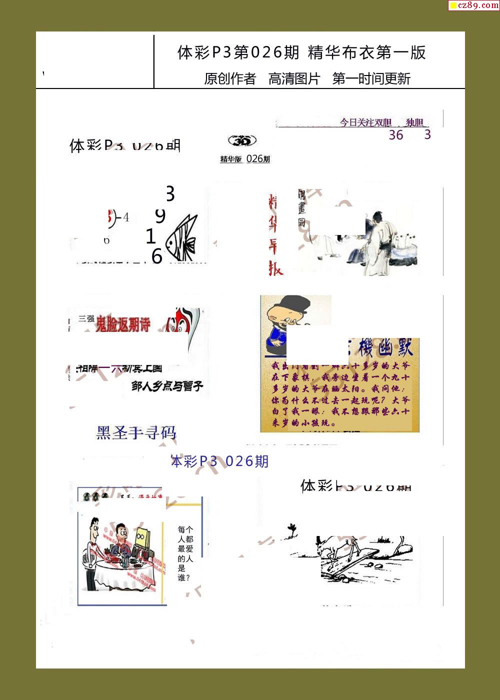 精华布衣彩报026期体彩p3图谜
