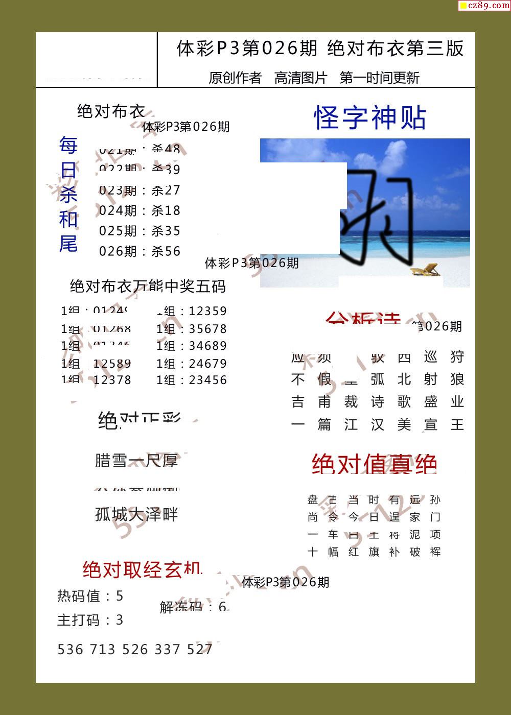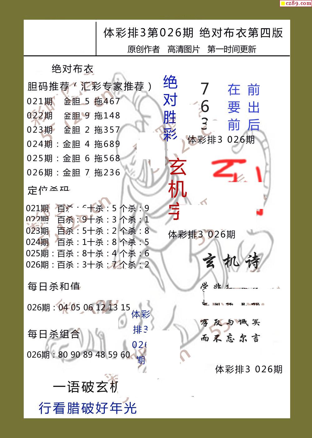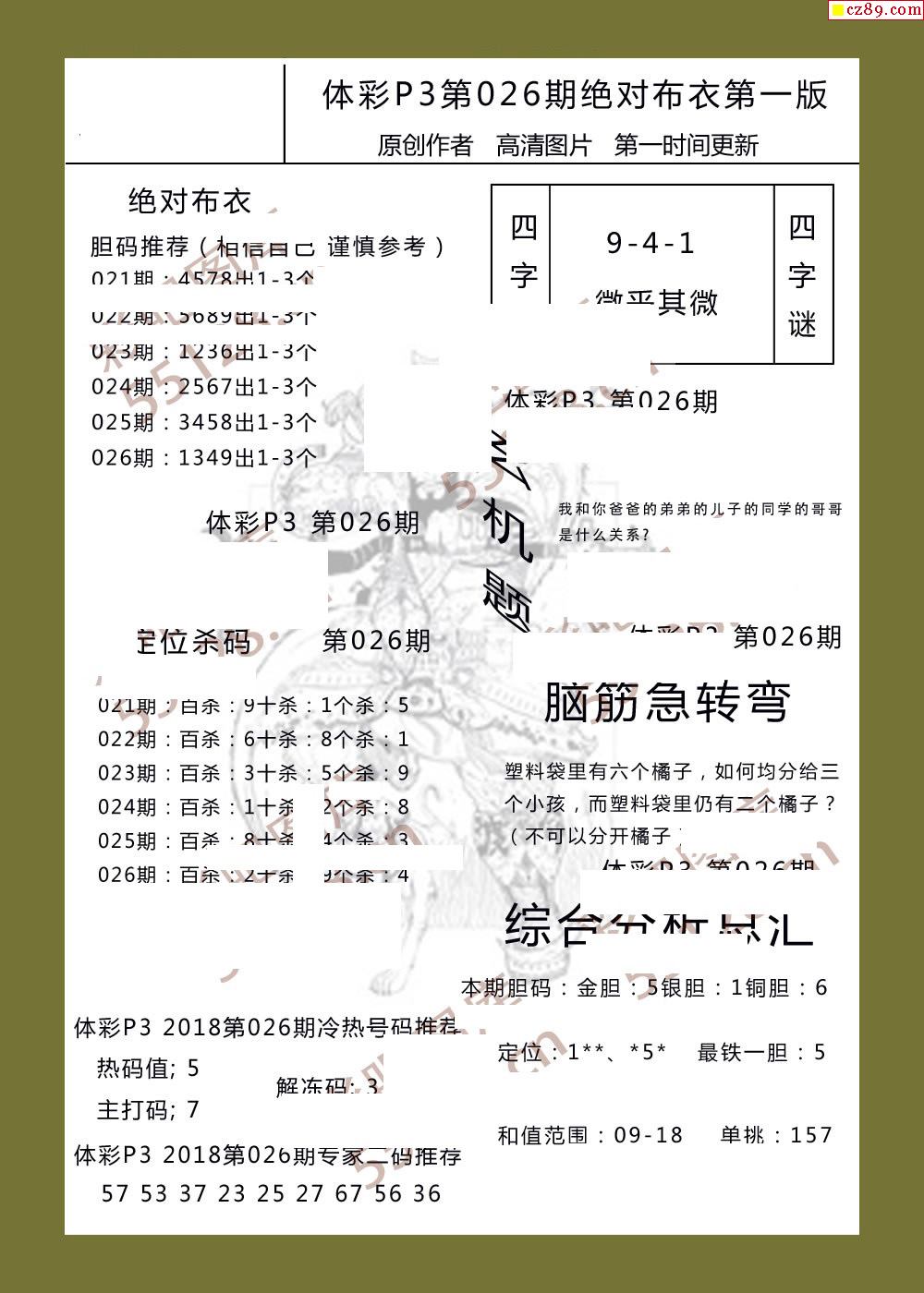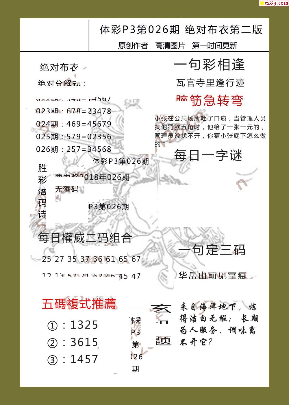 绝对布衣026期体彩p3图谜