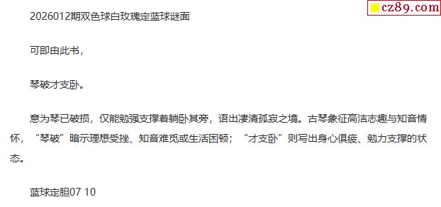 26年福彩双色球012期 白玫瑰定蓝球字谜