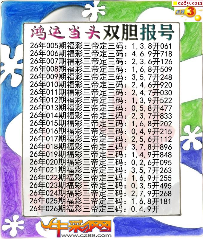 鸿运当头双胆报号026期体彩P3图谜