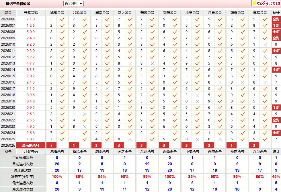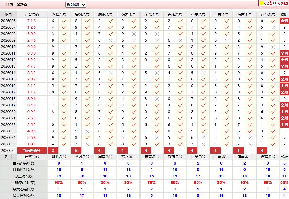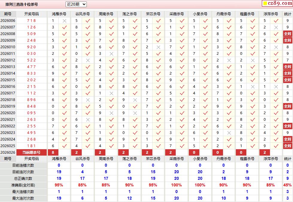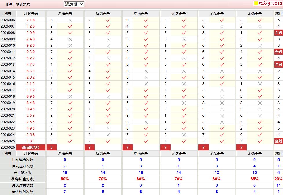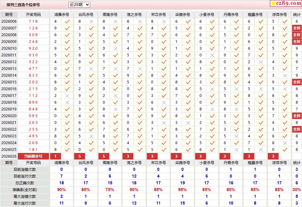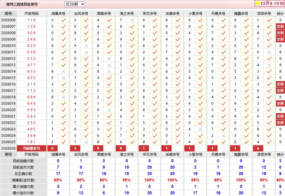 26年026期彩宝贝专家体彩P3杀号定码图表