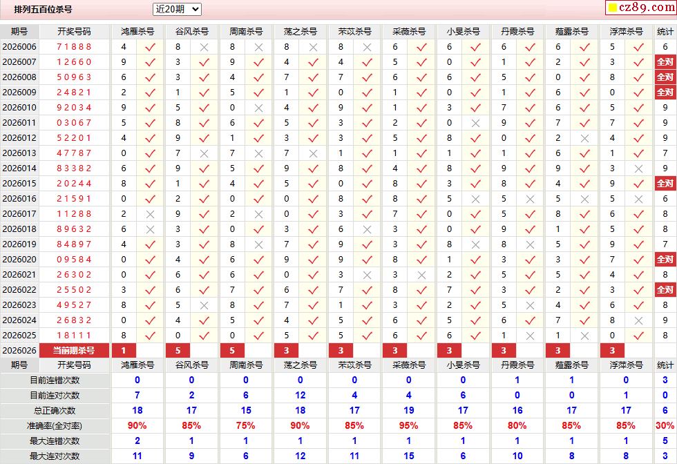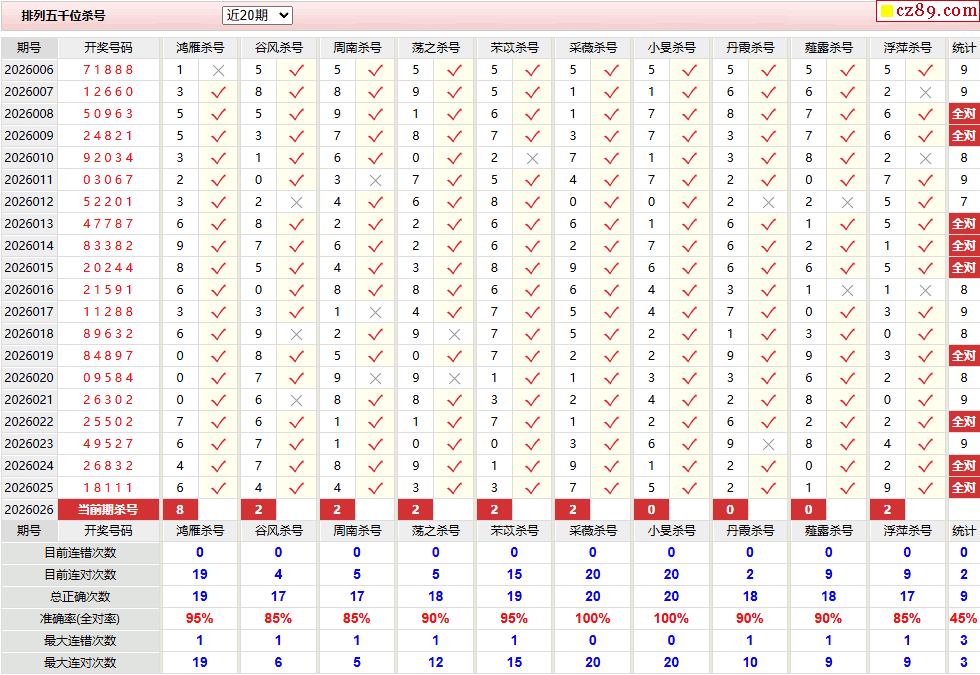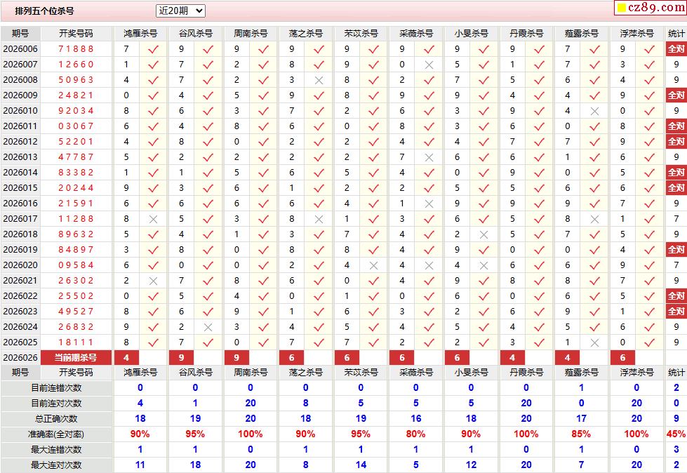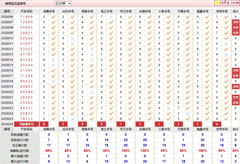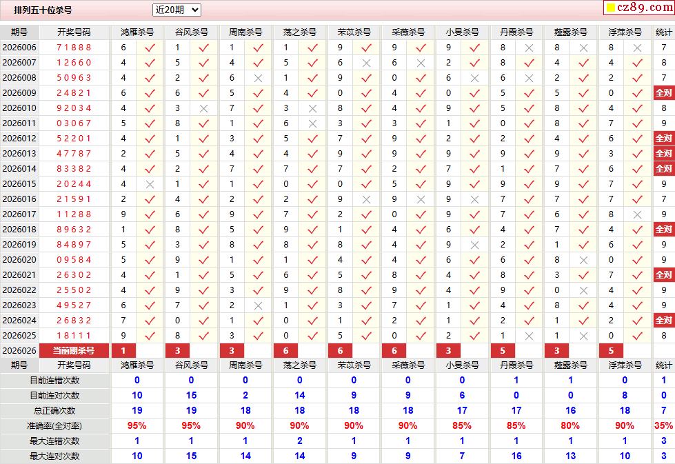 026期彩票专家体彩P5杀号推荐图表