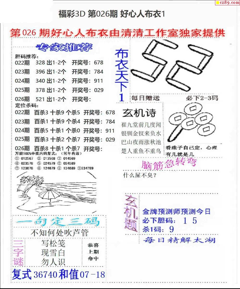 好心布衣2026026期3d图谜
