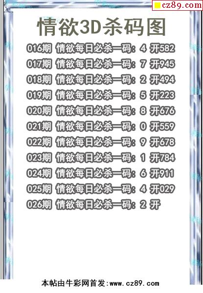 3D图谜: 3D胆码图 3D杀码图