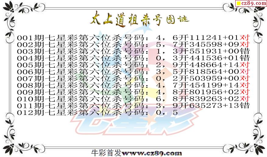七星彩2026012期太上道祖杀号图谜 11中9