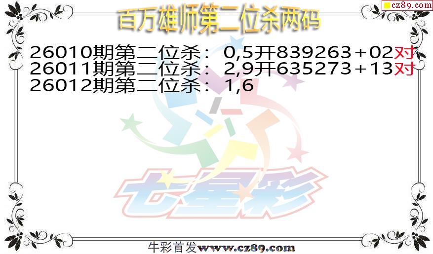 七星彩2026012期百万雄师第二位杀两码图谜 11中10