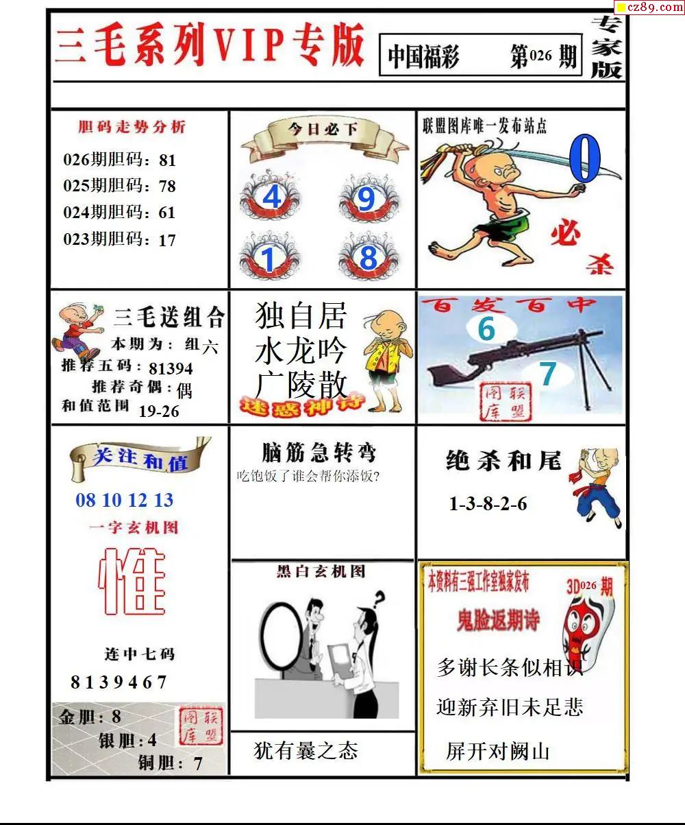 福彩3D2026026期东盛彩报+精品三毛会员版